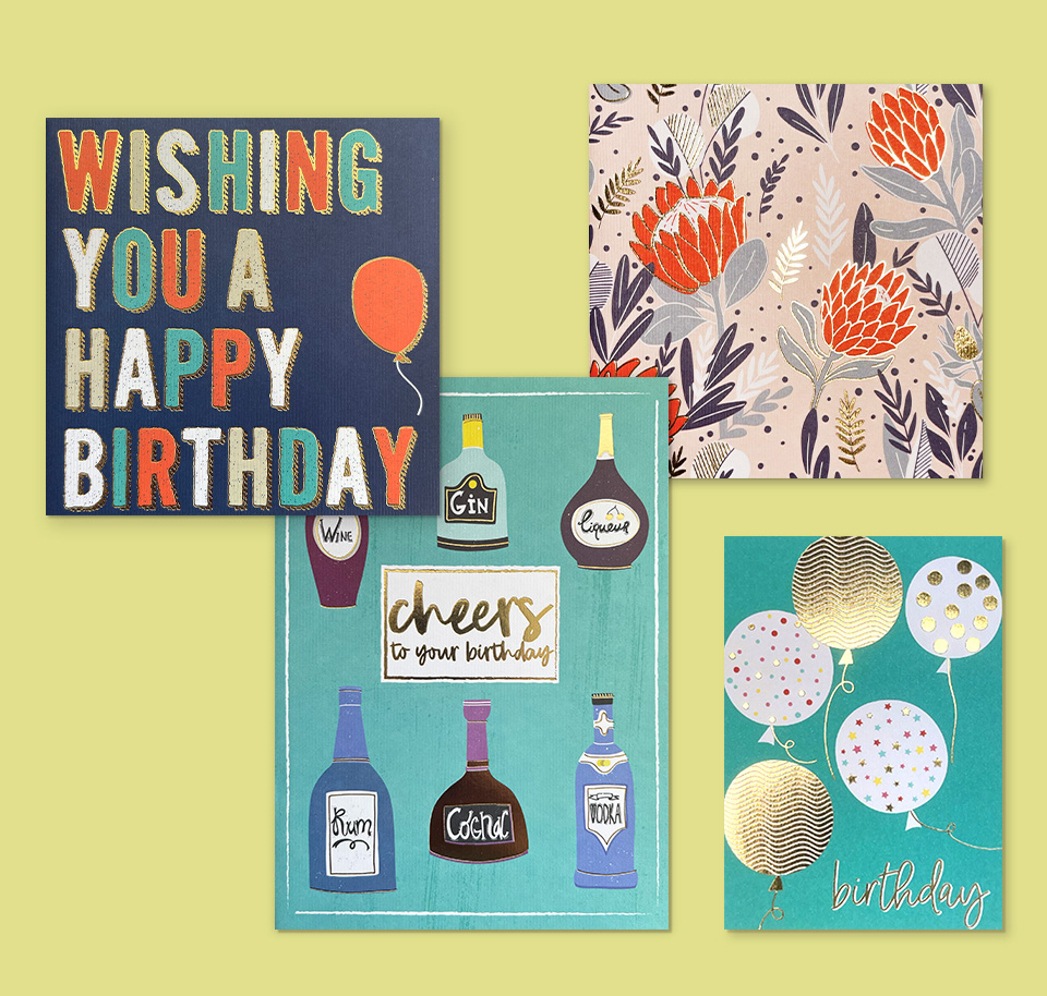 This premium range features colourful on-trend designs. All of the cards are foiled and are made with high quality textured paper. Each card is paired the a coloured or kraft envelope and is individually wrapped in a polybag, that is recyclable & biodegradable.