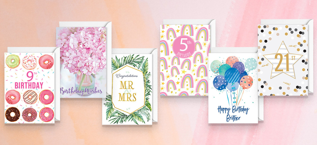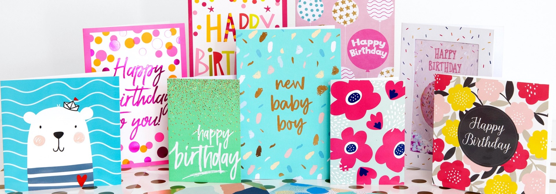 This range specialises in birthdays, babies, weddings and anniversaries. With clever use of colours and vibrant designs to please everyone.